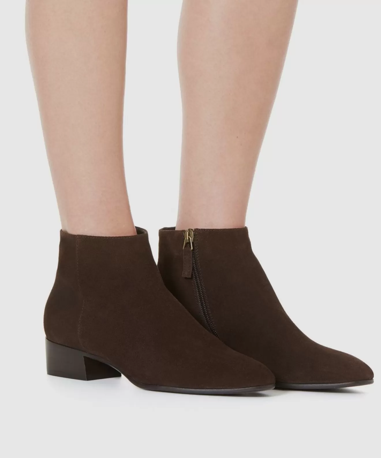 Classic Suede Bootie With A Snipped Toe And Inside Zipper On A Stacked Heel.