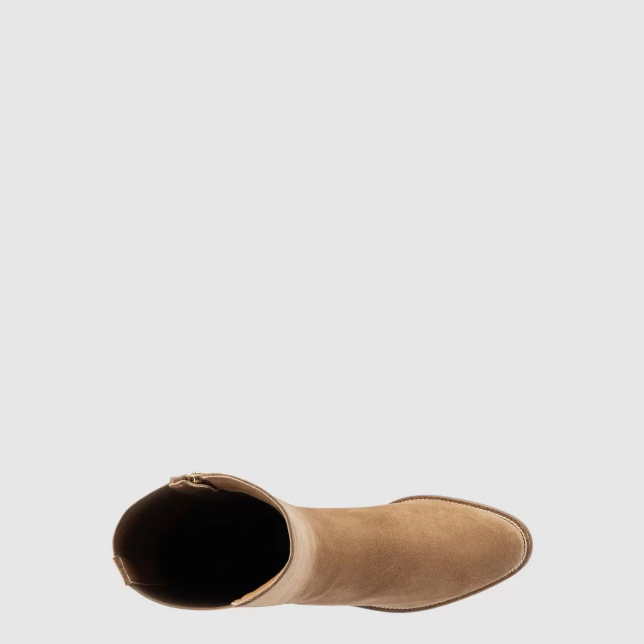 A Stretch Panel In Back Imparts Flexibility To Our Nolita Boot, Crafted In Suede With Loop And Stud Details. Enhanced By A Stacked Heel And Almond-Toe Silhouette, It Pairs Perfectly With Everything From Tailored Skirts To Soft, Flowy Dresses. Our Signature Lining Adds Breathability.