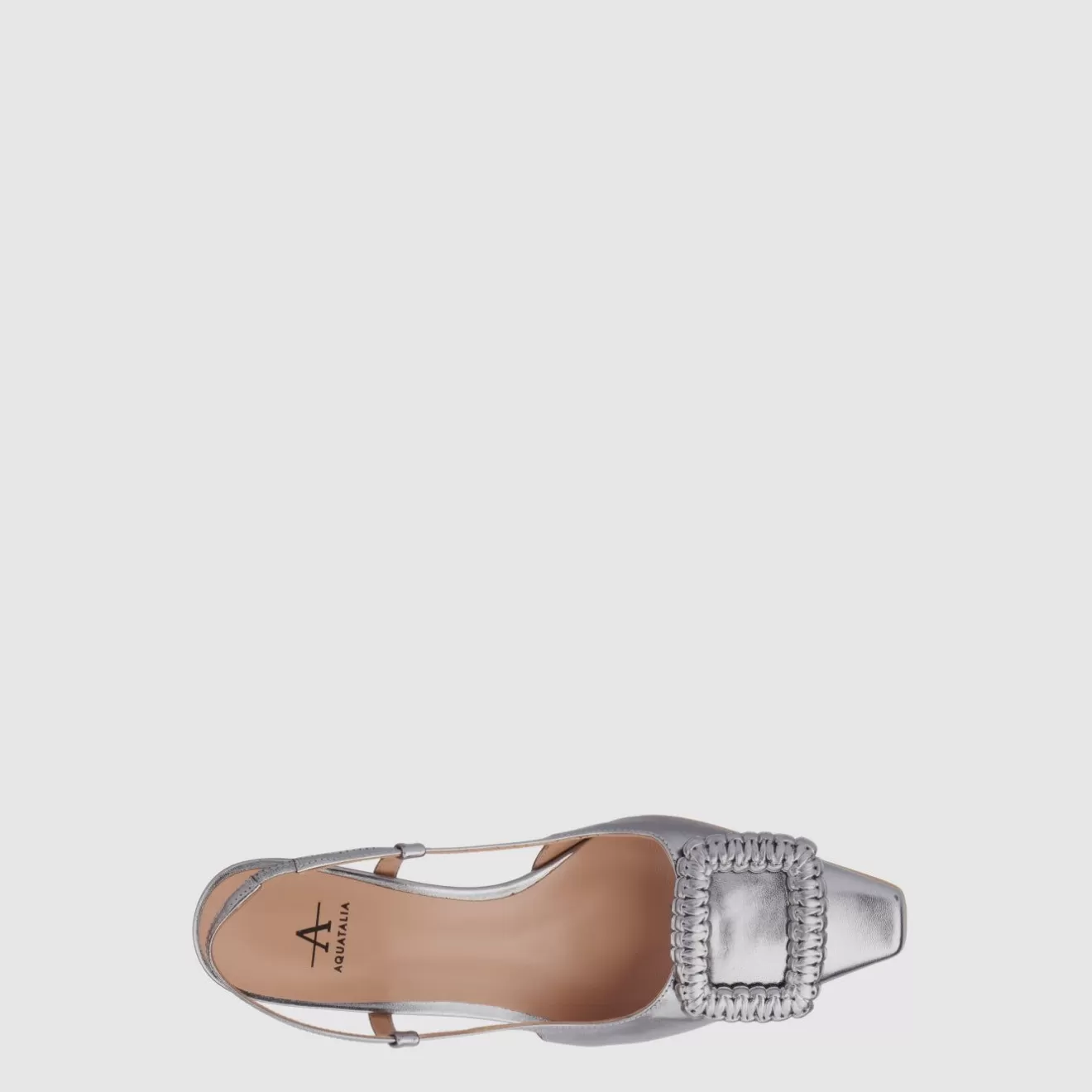 Pretty Meets Practical In Our Arabella Slingback, Crafted In Dress Suede As Well As Shimmery Metallic Leather. Designed With A Snipped-Toe Silhouette, Woven Square Accent On Front And Scratch-Resistant Lacquered Heel, It’S Finished With Elastic In Back For Ease Of Wear. A Chic Complement To Skirts And Dresses As Well As Trousers, It Translates From 9 To 5 And 5 To 9 In Style.